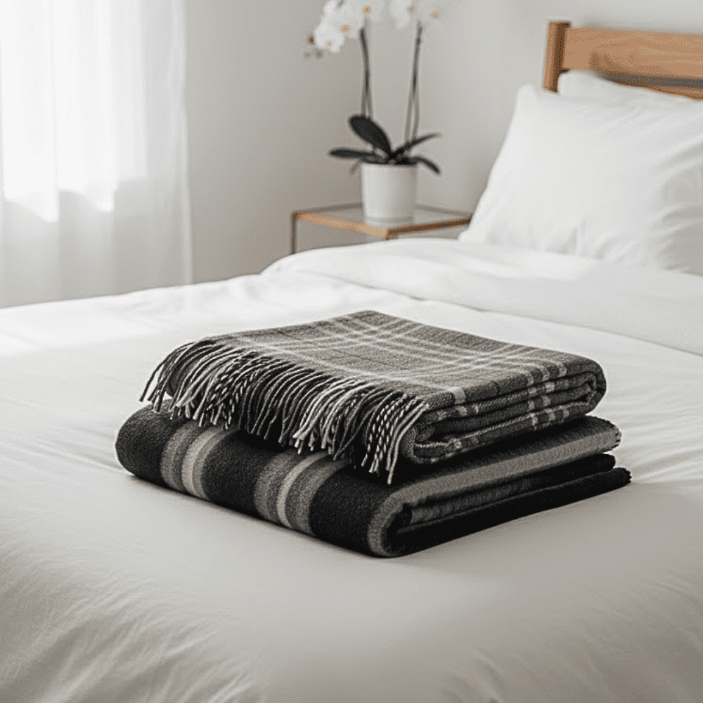 Frazadas que destacan por su suavidad natural y su capacidad para conservar el calor, ofreciendo abrigo de alta calidad.
